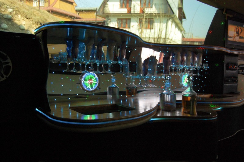 Loaded with luxury options like leather seats, AC, self-leveling very soft air suspension, mirrors, 3 drink bars, interior LED lighting in 7 colors of your choice. Equipped with TV/DVD and drink bars with 4 bottles of cognac, whiskey or vodka of your choice inclusive.